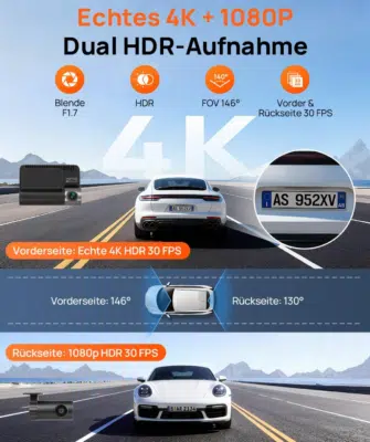 4K-Aufnahmequalität und Kennzeichenerkennung