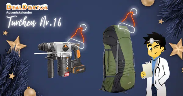ABGELAUFEN 🎁 DealDoktor Adventskalender – Türchen 16: WORX Bohrhammer & Deuter Rucksack zu gewinnen!