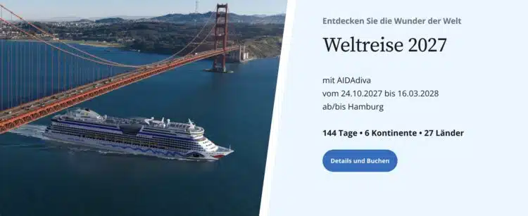 - 144 Tage AIDA Weltreise 2027 ab 21.995€ pro Person