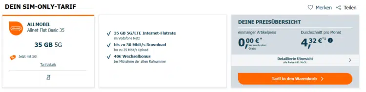 - 👉 mit 40€ Wechselbonus: eff. 4,32€ mtl. über 2 Jahre