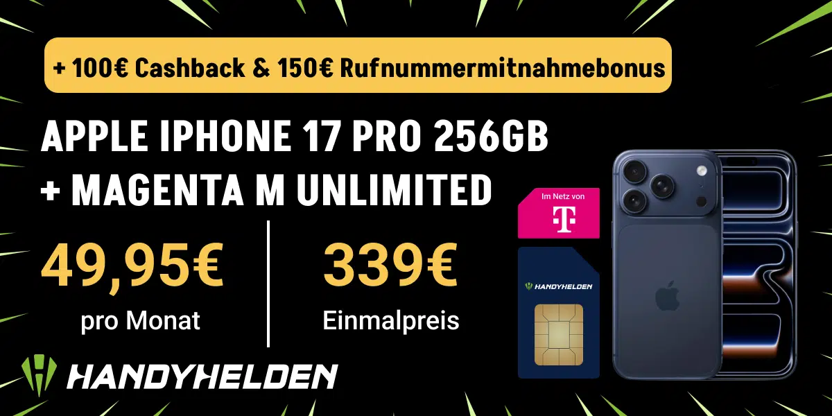 - Apple iPhone 17 Pro (256GB) + Telekom Magenta M Unlimited für effektiv 3,28€/Monat