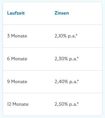 - ✅ Attraktiver Zinssatz von 3,25% p.a. für 3 Monate
