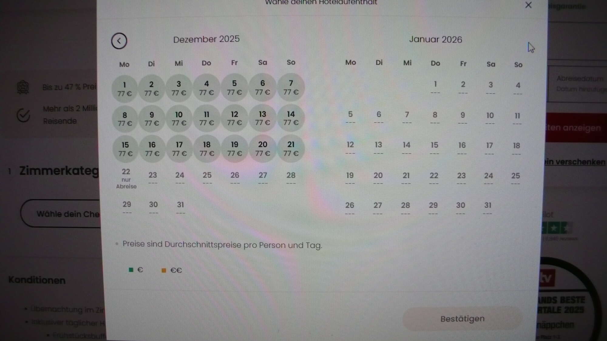 @Die Wundertuete: Die Preise können je nach Saison und Verfügbarkeit variieren. Der angegebene Preis „ab 62€“ bezieht sich auf die günstigste Option, die möglicherweise nicht immer verfügbar ist. Vielleicht lohnt es sich, verschiedene Termine zu prüfen, um einen besseren Preis zu finden. Aber vielen Dank für dein Feedback, dazu.