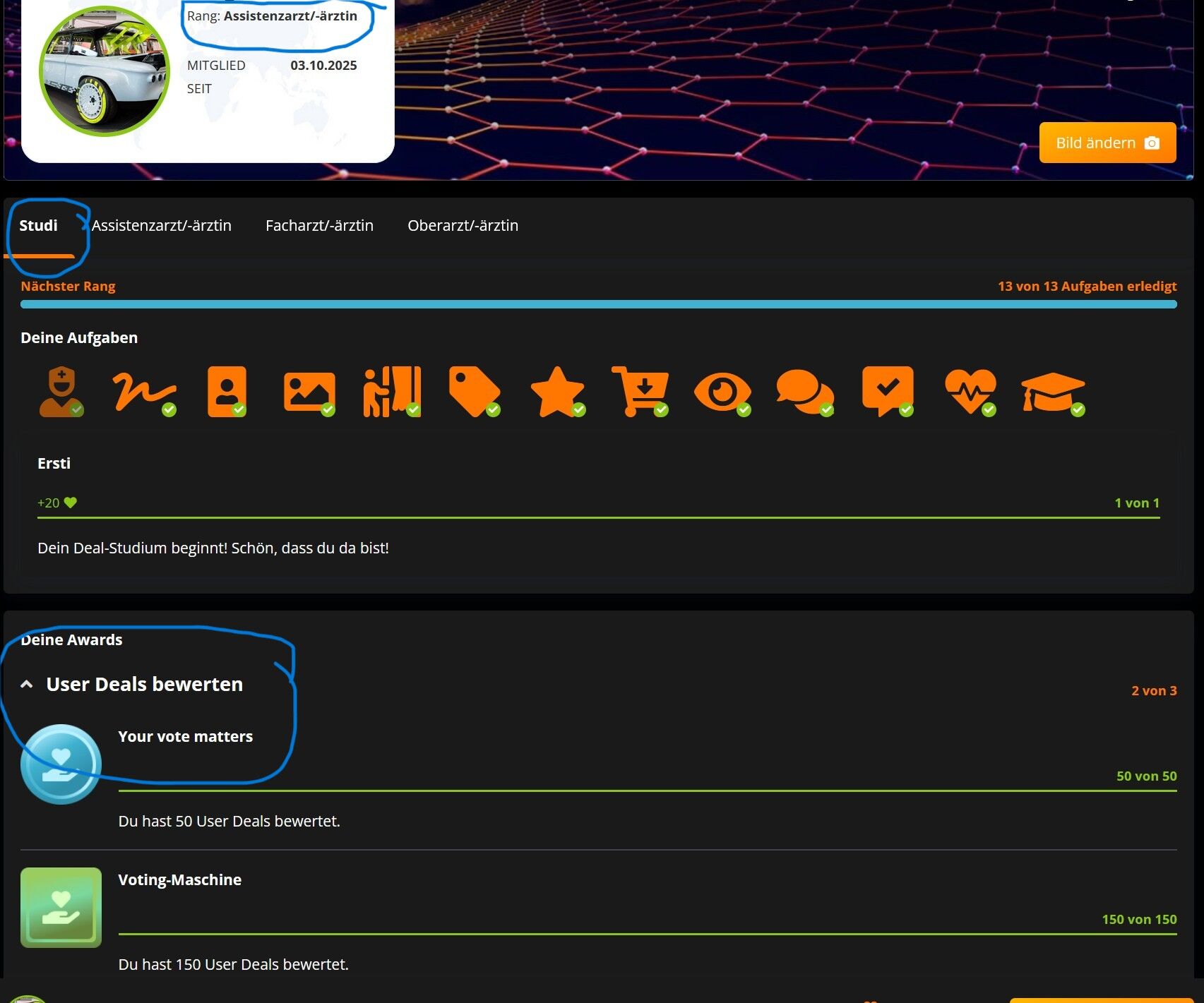 Wenn ich Unter Meine Karriere gehe ist immer " STUDI" offen obwohl ich schon weiter bin. Hier wäre es doch schön wenn die Stufe offen ist in der man sich gerade befindet.