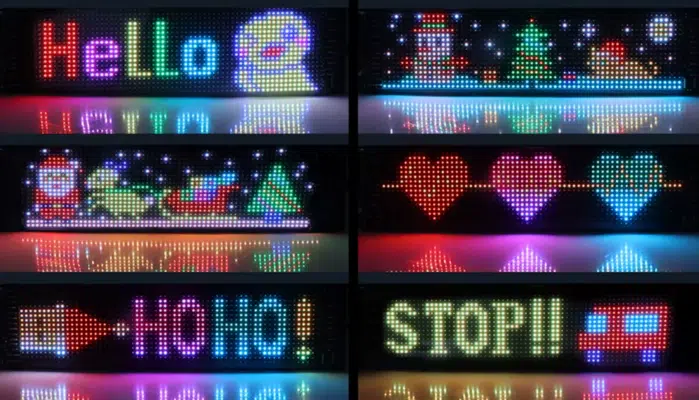 - Graffiti & GIFs: Ihr könnt selbst Pixel-Art zeichnen oder vorgefertigte Animationen abspielen (Pac-Man, Herzschlag, etc.).