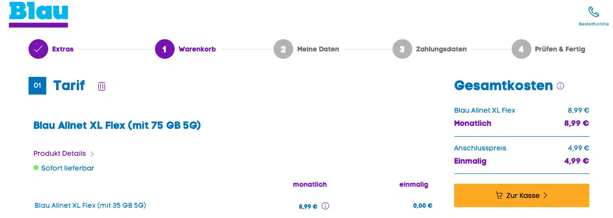 Geheim-Deal 🤫 Blau Allnet XL Flex mit 75GB LTE für 8,99€ mtl. + 0,00€ Anschlusspreis + ohne Laufzeit!