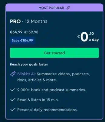 Alternativ bekommt ihr Blinkist Pro für 34,99€ statt 140€.