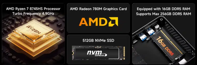 Hier lohnt sich ein genauer Blick: Der verbaute 8745HS ist eine Spezial-Variante des populären 8845HS. Der Unterschied: Dem 8745HS fehlt die dedizierte NPU (Neural Processing Unit) für KI-Aufgaben („Ryzen AI“).