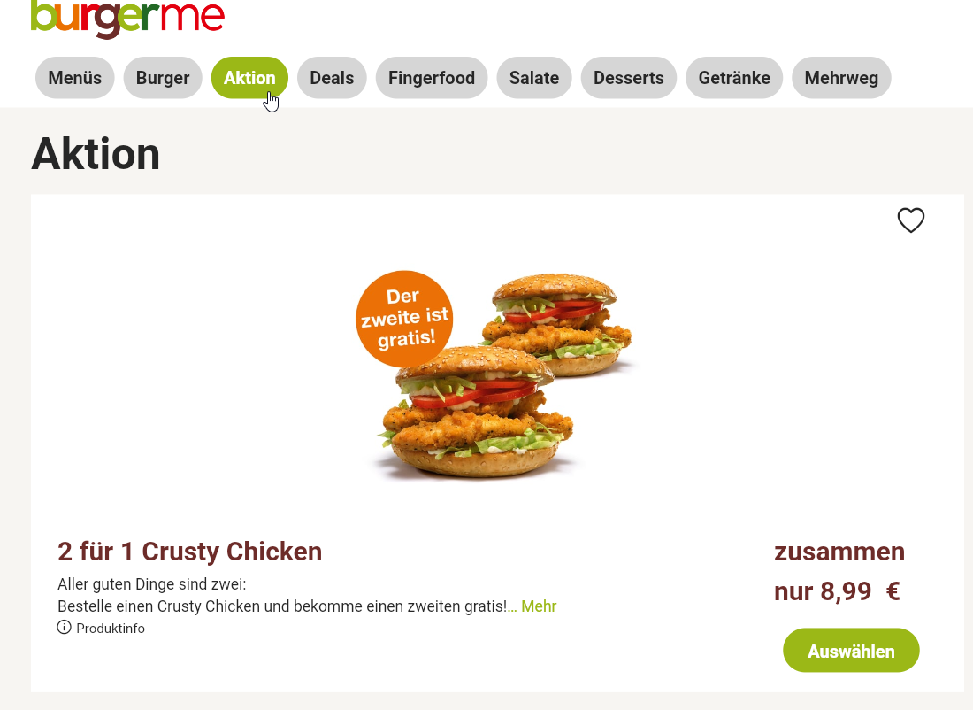 - Deal: 2 Burger zum Preis von 1