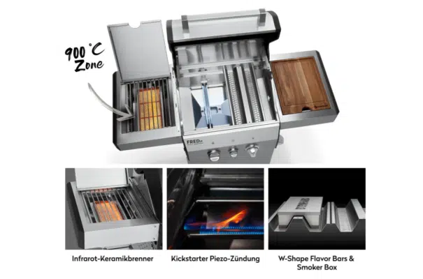 - BURNHARD FRED Jr. Deluxe Gasgrill (2 Brenner + 900°C Sizzle Zone) für 454€