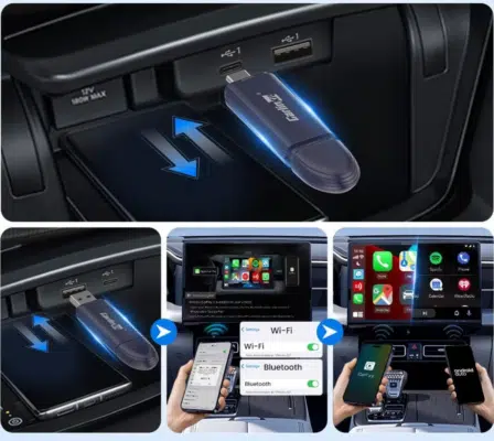 Voraussetzung ist ein Fahrzeug mit werksseitigem Android Auto oder Apple CarPlay, das bisher nur per Kabel funktioniert. Der CarlinKit Mini SE Pro wird eingesteckt, einmal mit dem Smartphone gekoppelt – und verbindet sich danach automatisch.