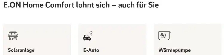 Einen E.ON Home Comfort-Tarif könnt ihr nur dann abschließen, wenn ihr mindestens eine der folgenden Energielösungen besitzt: