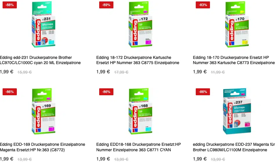 - Verschiedene Edding Druckerpatronen fĂźr nur 1,99âŹ