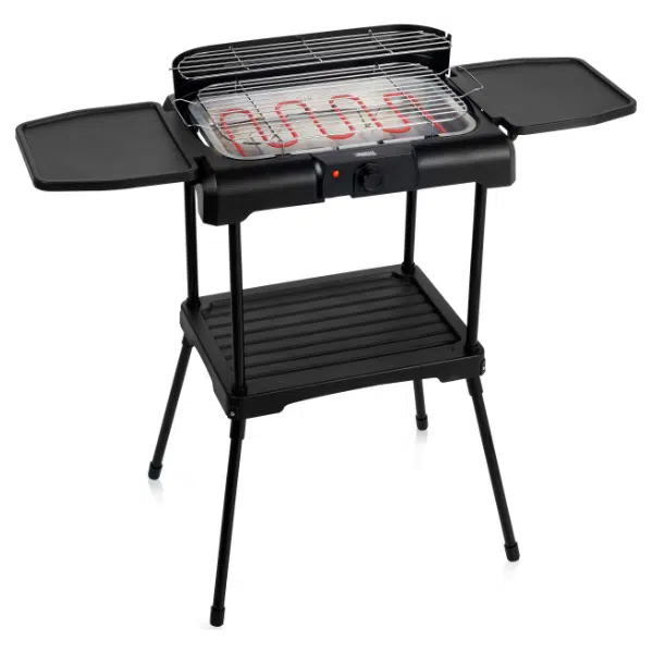 Bei diesem Grill habt ihr die Wahl: Ihr könnt ihn entweder als Tischgrill verwenden oder als Standgrill auf dem Gestell. Er verfügt über einen Windschutz, ein Ablagegestell und seitliche Ablagen für das Grillzubehör, Teller und mehr. Der Grill hat zwei Grillroste in unterschiedlichen Höhen, so dass ihr nicht nur Fleisch, sondern auch Fisch und Gemüse garen könnt: Verwendet zum Beispiel den oberen Grillrost, um ein größeres Stück Fleisch ruhen zu lassen, damit es warm und saftig bleibt, während ihr das Gemüse auf dem unteren Rost schnellt grillt, damit dann alles gleichzeitig serviert werden kann. Beim Princess 112250 könnt ihr einen einstellbaren Thermostat nutzen, so dass ihr einfach entscheidet, bei welcher Temperatur ihr das Grillgut grillen möchtet.