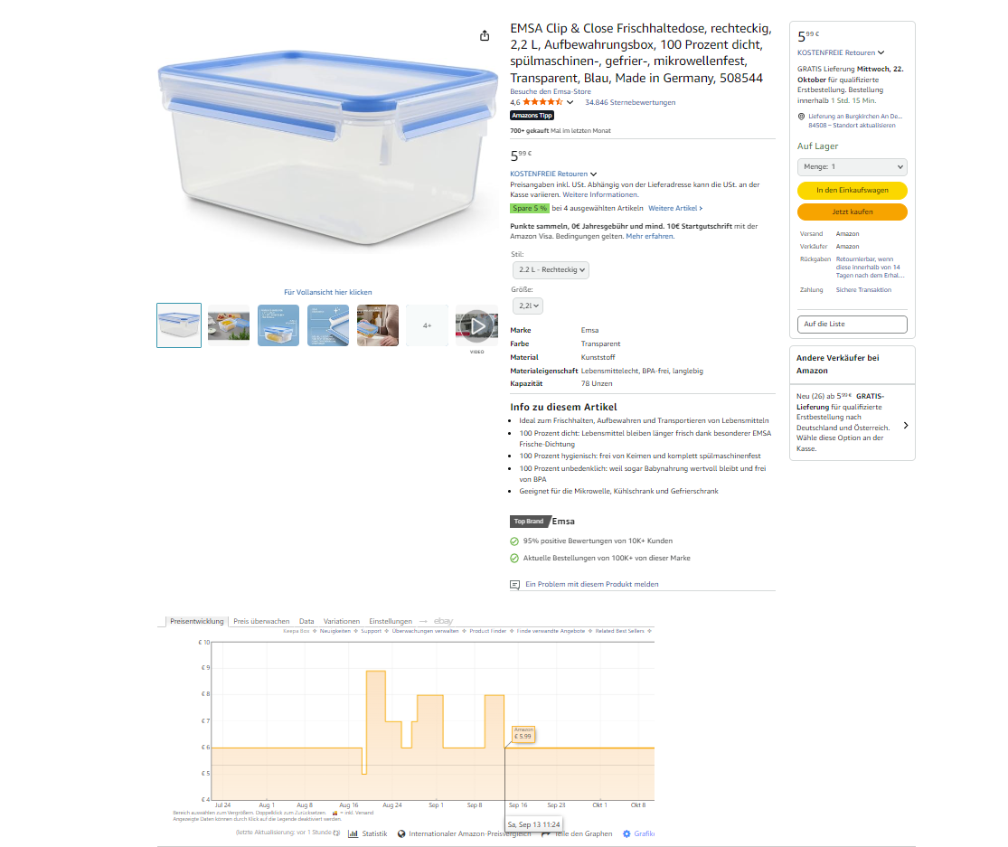 Die Präsentation dieses Amazon-Angebots, dessen Preis schon seit dem 13.09.25 (!) unverändert ist, hat nichts mit einem Deal, sondern nur mit Werbung und den händlerseitig dafür ausgelobten Provisionen zu tun. 🙄