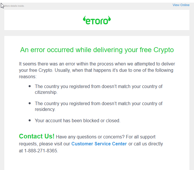 It seems there was an error within the process when we attempted to deliver your free Crypto. Usually, when that happens itâs due to one of the following reasons: