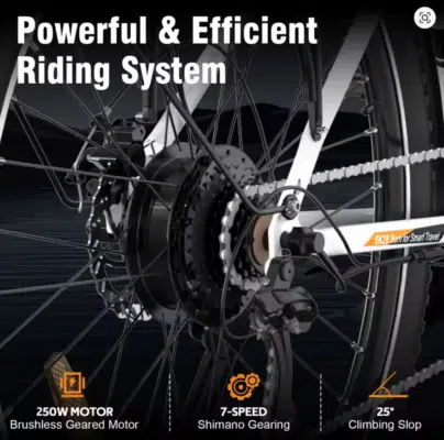 Der 250W-Bürstenmotor liefert einen soliden Schub für Ampelstarts und Gegenwind, ohne anzugreifen wie teure Mittelmotoren. Mit 25km/h Höchstgeschwindigkeit bewegt ihr euch regelkonform im Verkehr. 30–90km Reichweite decken typische Wochenpendelstrecken ab; wer konstant hohe Unterstützung wählt, plant eher mit der unteren Spanne. Die 6–7h Ladezeit passt über Nacht, morgens steht das Rad wieder bereit.