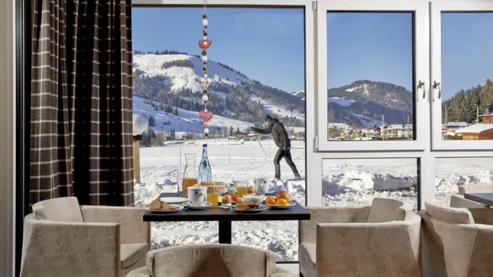 Im Sommer locken Wanderwege, Almen und Bike-Strecken direkt vor dem Hotel. Die Region ist ein echtes Paradies für Aktivurlauber! Im Winter erwartet euch das Skigebiet Skicircus Saalbach Hinterglemm Leogang Fieberbrunn nur wenige Minuten entfernt – Schneespaß garantiert!