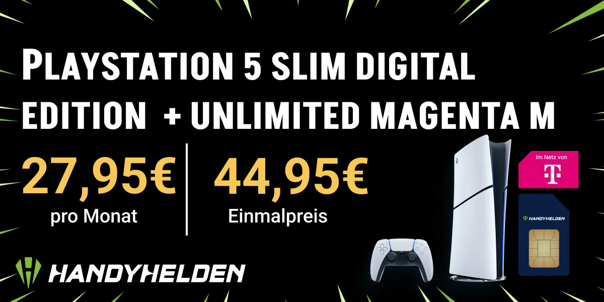 Wer eine PS5 Slim Digital Edition sucht und gleichzeitig Lust auf Unlimited im Telekom-Netz hat, bekommt hier ein Paket, das preislich schwer zu schlagen ist.