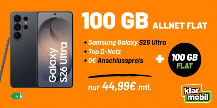 Endlich ist die Katze aus dem Sack: Samsung hat die neue S26-Serie enthĂŒllt! đ Und wenn ihr direkt zum Launch zuschlagen wollt, hat klarmobil im Vodafone-Netz gerade ein Angebot geschnĂŒrt, bei dem ihr euch massig Speicherplatz gratis sichert.Â