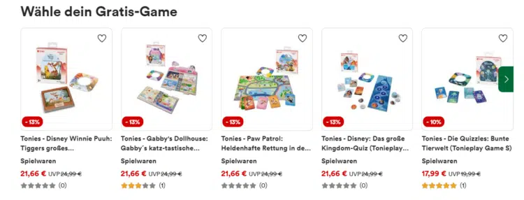 Praktisch: Ihr mĂŒsst keinen Gutscheincode eingeben. Einfach eine Toniebox 2 in den Warenkorb legen, das gewĂŒnschte Tonieplay Game (S oder M) hinzufĂŒgen â der Gratis-Rabatt wird an der Kasse automatisch verrechnet.