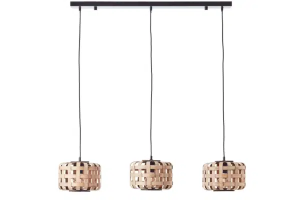 Die „Woodline“ ist eine 3-flammige Pendelleuchte mit Bambus-Schirmen und schwarzer Aufhängung. Sie bringt sofort wärmere Lichtstimmung über euren Esstisch und passt super zu Holz-Esstischen, schwarzen Stühlen oder schlichtem Skandi-Interieur. Durch den E27-Sockel seid ihr flexibel: Ob warmweiße Filament-Bulbs, sparsame LEDs oder smarte Lampen – reinschrauben, fertig. Dank der 104 cm Länge leuchtet sie auch längere Tafeln gleichmäßig aus.