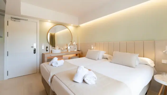 Die Zimmer werden typischerweise mit Balkon, Klimaanlage, TV und Safe beschrieben – also alles, was man für eine Mallorca-Woche wirklich braucht.