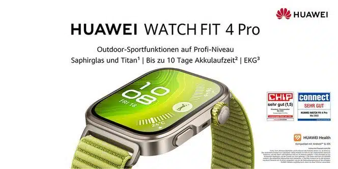 - Huawei Watch Fit 4 Pro (Titan & Saphirglas) für 169,99€