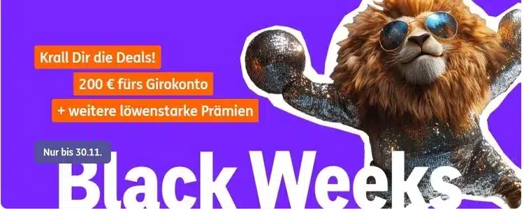 Friendliy reminder: Bei der ING ist jetzt schon Black Week angesagt und das bedeutet für euch: Fetter 200€ Bonus für die Eröffnung des Girokontos.