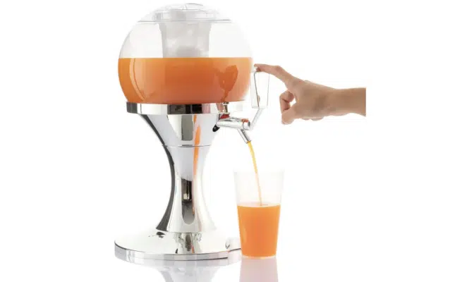 Im Inneren des Behälters, der Platz für 3,5 Liter Bier oder andere Getränke bietet, ist genügend Platz für die Halterung, in der ihr Eis aufbewahren könnt – so bleiben die Getränke immer schön kalt, so wie es sich gehört!
