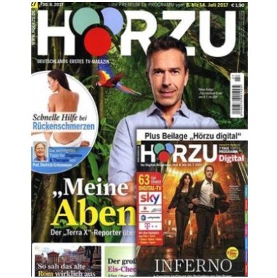 Die Hörzu Digital ist laut Anbieter „…Deutschlands große Zeitschrift für Fernsehen, Familie und Freizeit und zählt mit Recht zu den Klassikern auf dem Zeitschriftenmarkt. Mit „HÖRZU Digital“ erhalten Sie ein wöchentliches, besonders übersichtliches Fernsehprogramm inklusive digitaler Fernsehprogramme und Pay-TV mit kompetenten, kritischen Bewertungen von Filmen, Serien und TV-Sendungen. Dazu gibt’s unterhaltsame Themenschwerpunkte, Hintergrundberichte und extra viele Rätsel – frei Haus.“