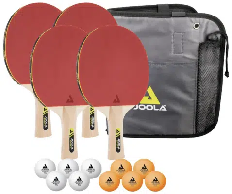 Das 15-teilige Tischtennisset von JOOLA steht fĂźr hohe Qualität, wie ihr sie von einem erfahrenen AusrĂźster von weltweiten Tischtenniswettkämpfen erwarten kĂśnnt. Ihr erhaltet vier ergonomische Tischtennisschläger, die fĂźr eine optimale Kontrolle konzipiert sind, und fĂźhlen sich nahezu wie eine natĂźrliche Verlängerung eurer Arme an. Zusätzlich sind zehn Tischtennisbälle im Set enthalten â fĂźnf in WeiĂ und fĂźnf in Gelb â die durch ihren gleichmäĂigen Ballabsprung und ihre Langlebigkeit ßberzeugen. Das Ganze kommt mit einer praktischen Tragetasche, die das verstauen und den Transport der AusrĂźstung erleichtert. Ideal fĂźr den FreizeitspaĂ zu Hause oder unterwegs.