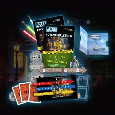Mit dem „EXIT – Das Spiel“ Adventskalender beginnt ein einzigartiges Rätselabenteuer, das dich Tag für Tag tiefer in eine geheimnisvolle Geschichte zieht. Hinter jedem der 24 Türchen verbirgt sich ein neues Puzzle, das nur mit Köpfchen, Neugier und der cleveren Decodiertafel gelöst werden kann. Die atmosphärische Abenteuergeschichte und das umfangreiche Spielmaterial – vom Story-Block bis zu den detailreich gestalteten Rätselkarten – sorgen dafür, dass kein Tag wie der andere ist.