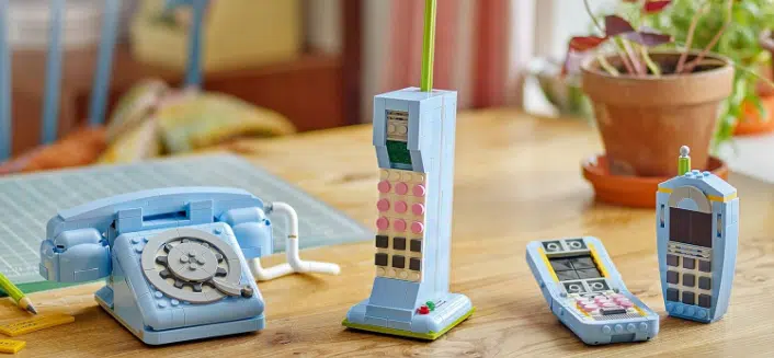 Aus 383 Teilen lassen sich vier verschiedene Telefone bauen – und diese begleiten euch auf einer kleinen Reise durch die Zeit.
