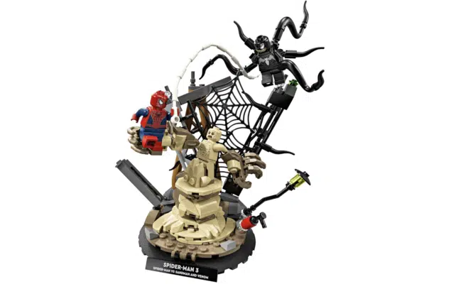 Das Set ist im Kern ein kompaktes Showdown-Diorama: Spider-Man kann sich mit dem Netzseil ins Getümmel schwingen, Sandman wirkt durch seinen Look schön wuchtig – und Venom bringt mit seinen beweglichen Tentakeln direkt den typischen Symbionten-Style rein.