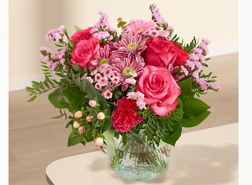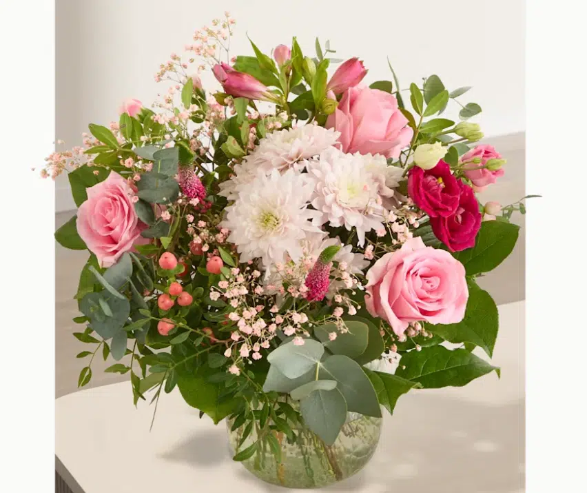 - Strauß „Für Dich“ für 18,69€ (statt 21,99€) – Harmonische Rosé- und Pinktöne, ca. 25 cm Durchmesser.