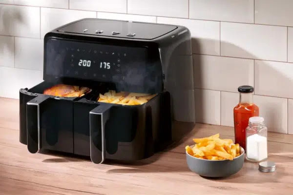 Das eigentliche Highlight hier ist ganz klar die Größe in Kombination mit dem Preis: Zwei große Fächer mit jeweils über 4 Litern bedeuten, dass ihr problemlos zwei unterschiedliche Gerichte parallel zubereiten könnt – ohne Kompromisse bei Menge oder Timing.