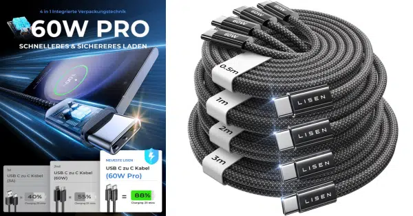 - LISEN 60W USB-C Kabel (4er Pack) für 5,99€
