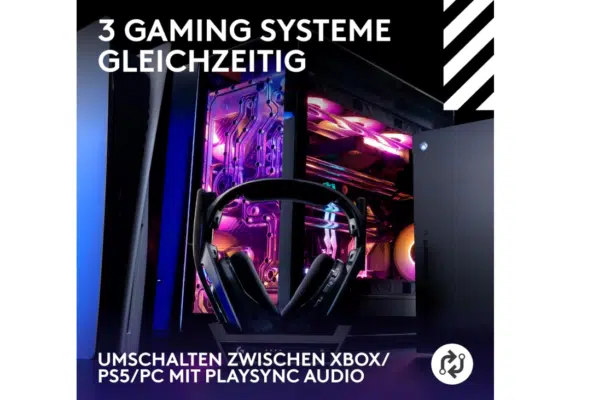 Der gröĂte Vorteil: Ihr mĂŒsst nie wieder Headsets umstöpseln. Dank PlaySync koppelt ihr drei Systeme gleichzeitig und wechselt einfach direkt am On-Ear-Button zwischen euren Plattformen. Und weil die Ladestation gleichzeitig Dock & Display ist, habt ihr immer ein aufgerĂ€umtes Setup.