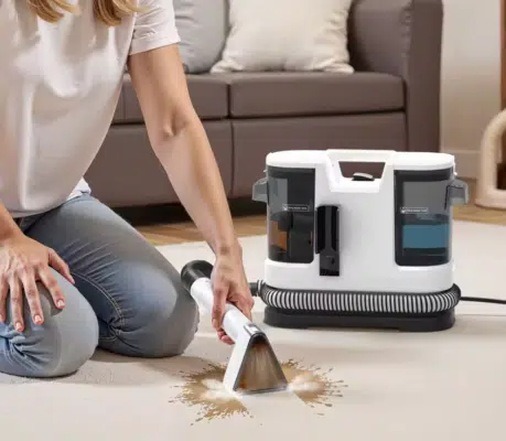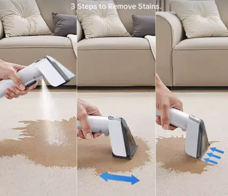 Hartnäckige Flecken auf Polstern oder Teppichen lassen sich mit kaltem Wasser oft nur schwer entfernen, da Fette und tiefsitzender Schmutz nicht gelöst werden. Der V8 Fleckenreiniger setzt hier auf ein integriertes Heizsystem, das die Reinigungsflüssigkeit aktiv erwärmt. Das Gerät kombiniert diese thermische Behandlung mit einer hohen Saugkraft, um Textilien im Haushalt oder Fahrzeuginnenräume tiefenwirksam zu reinigen.