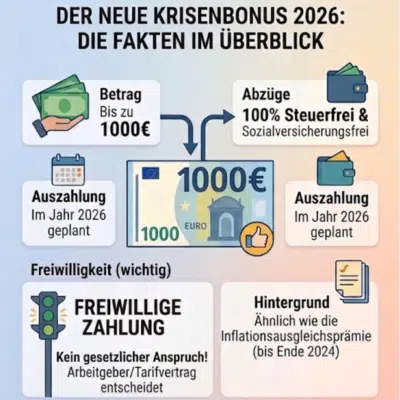 In der politischen Landschaft tut sich wieder was: Die Bundesregierung hat ein neues Paket geschnürt, das euch finanziell unter die Arme greifen soll. Ein zentraler Punkt dabei ist der geplante Krisenbonus. Wir haben uns das Ganze mal genau angeschaut und klären für euch, wer auf die 1000€ Entlastungsprämie hoffen darf – und wer am Ende vermutlich leer ausgeht.