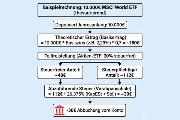 Ausgangspunkt ist der Wert des ETFs zu Jahresbeginn: Entscheidend ist der Depotwert am 1. Januar des jeweiligen Jahres – nicht der Wert am Jahresende.