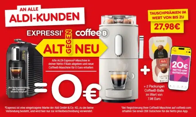 - Bringt eure alte Aldi Expressi Maschine einfach zu Netto.