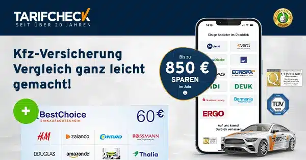 👉 🚗 60€ Bonus für Kfz-Versicherungswechsel über Tarifcheck/Check24