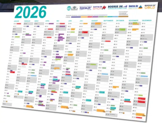 Ihr hättet gern einen übersichtlichen Kalender im Posterformat und interessiert euch für die Börse? Dann dürfte der kostenlose Börsenkalender 2026 genau das Richtige für euch sein. Enthalten sind darin: