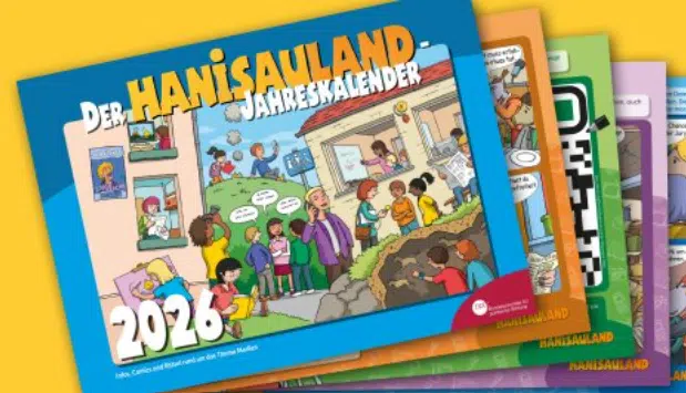 Auch der beliebte HanisauLand-Wandkalender kommt 2026 wieder! Diesmal dreht sich darin alles rund um das Thema Medien – der Kalender bietet dazu kindgerechte Erklärungen, außerdem Rätsel, Comics, eine Bastelvorlage und mehr! 😊 Bestellen könnt ihr ihn bei der Bundeszentrale für politische Bildung (bpb). Ihr könnt ihn auch als PDF downloaden, in der Papiervariante kommt er im Format A3.