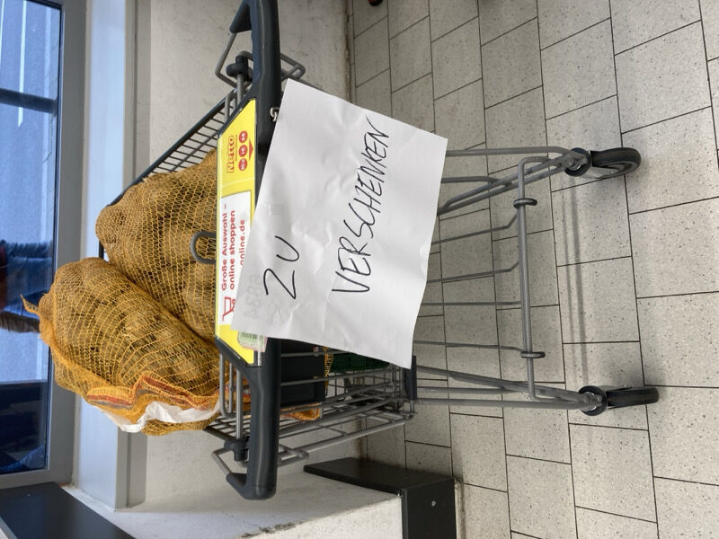 Heute früh in meinem Netto 😃 es waren geschätzt 10 Kilosäcke – alle zu verschenken. Ich habe einen mit dem Fahrrad mitgenommen und unterwegs 3/4 im Fairteiler deponiert. Jetzt habe ich immer noch viele Kartoffeln, die übrig waren. Aber die werden nicht schlecht.
