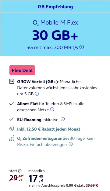 - o2 Mobile M Flex für 17,49€ (statt 29,99€)