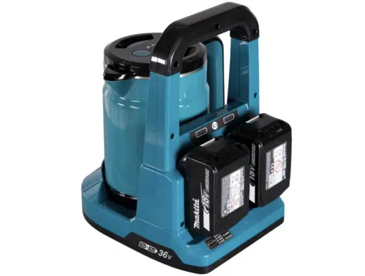 Der Makita Akku-Wasserkocher DKT360Z sticht durch seine kabellose Nutzung und die starke Leistung hervor. Ein herkömmlicher Wasserkocher benötigt immer eine Steckdose, während dieser Akku-Wasserkocher völlig unabhängig arbeitet. Auch die robuste Bauweise ist besonders für den Einsatz im Outdoor-Bereich oder auf Baustellen von Vorteil.