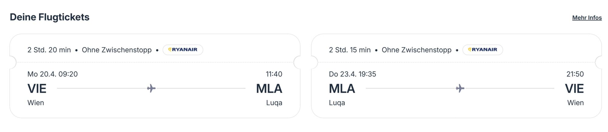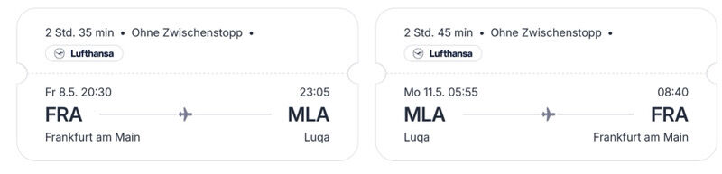 Leider sind bei den meisten Angeboten die Flugzeiten nicht akzeptabel (siehe Screenshot): der erste und letzte Tag fallen jeweils komplett weg, so dass hier effektiv nur zwei Tage für diese schöne Insel übrig bleiben.